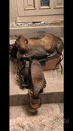 Vendo sella pony tutta ricamata in cuoio ,come nuova completa di sottopancia....