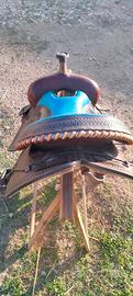 Seggio in pelle e decorazioni border stamp con riporti in rawhide.