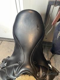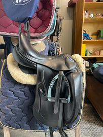 Vendo sella da dressage Prestige modello Venus K-New misura 17. Sella tenuta molto bene, seduta e materiale molto comodi. L’unico difetto che presenta e’ il passante per gli staffili del lato sinistro da riparare perche si e’ rotto (come si vede nell’ultima foto) Solo consegna a mano.