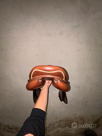 Sella comprata con buco nel quartiere, con occorrente riparazione in caso sempre tenuta pulita e ingrassata unico difetto che il quartiere essendo doppio consumandosi si è creato questo buco
