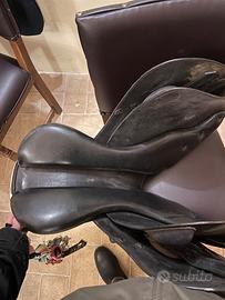 Vendo sella equitazione Prestige modello Paris, nera, misura 18 Nera. Usata ma ben tenuta, disponibili altre foto con dettagli dei piccoli segni di usura