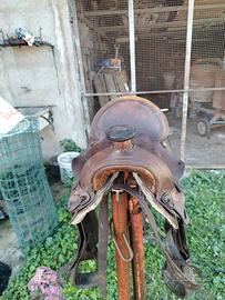 Sella originale di cuoio misure 17.p , con briglie e morso