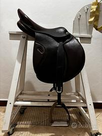 Vendo sella da salto Fouganza semi nuova Misura 17,5 Colore Marrone Il prezzo comprende Sella, staffili e staffe.