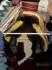 È stata appena revisionata dal sellaio e quindi sistemata, inoltre ha aggiunto i bucking rolls, il nastro sul pomello e il laccetto per il rope.