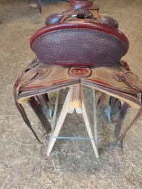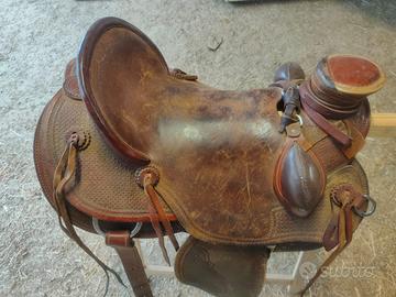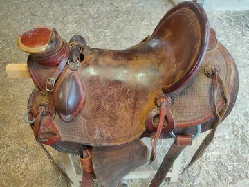 Sella western wade T&S Saddlery, importata da USA. Usata poco, ingrassata semestralmente, condizioni ottime. Seggio 17, arcione tra 90° e 100°.