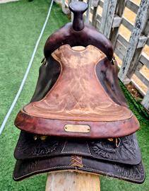 vendo sella americana è una 16 usata ma sana , arcione in legno,ottimo cuoio, comoda per passeggiate,(pre.tratt.)