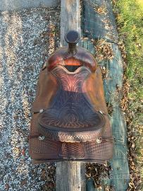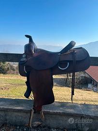 Vendo sella western da lacoro long horn, 15,5 pollici in ottime condizioni. Acquistata 6 mesi fa, ma purtroppo già veste stretta alla mia puledra. Sella tenuta sempre ingrassata, molto comoda per trekking anche di piú ore. Se interessati usare la chat di subito