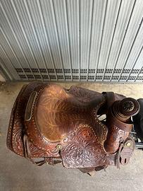 Bella sella Western Ryon, con decorazioni tipiche da western, buona vestibilità per cavalli con schiena standard, buona stabilità per rider. Ottima per chi cerca una sella western affidabile ad un prezzo ragionevole. tenuta molto bene e sempre ingrassata. 700€ trattabili