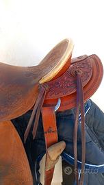 Sella Western Artigianale Gianni West, 16,5, Bowman Style, cuoio Ermann oak, fibbieria acciaio, staffe don ORREL, DECORI sparsi, sella seminuova, trattativa privata