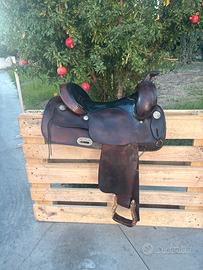 Vendo sella western marca double sedlery in cuoi, utilizzata in poche uscite, piccoli segni usura. Chiamare solo se interessati. No perditempo