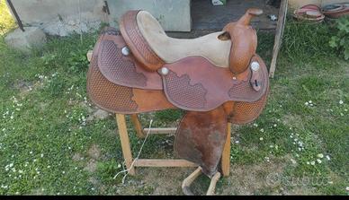 Sella Western, seggio scamosciato 16 pollici, ottime condizioni cone da foti. Prezzo 500€ trattabili. No perditempo