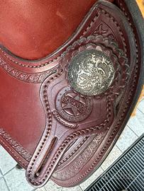 Sella americana western Garland (visibile logo originale). In ottime condizioni, è stata usata solo due volte, praticamente come nuova. Possibile consegna diretta in zona.