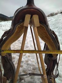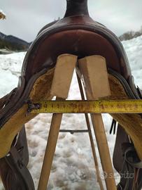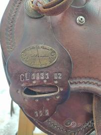 Vendo sella western marca D&P Deuber and Partner ( Double C - CC Saddlery), modello 1031 da trail (passeggiate/trekking), arcione n.2 quarter, seggio 15,5". Peso circa 13kg. Presenta qualche segno di usura ma in buone condizioni.