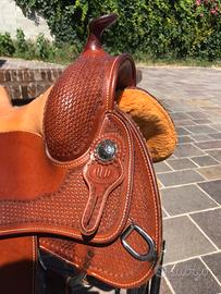 Vendo sella western in cuoio molto robusta, misura 17”, completa di staffe e cinghie. Feltro in ottime condizioni. Ideale per passeggiate e trekking anche lunghe, sempre tenuta al coperto.