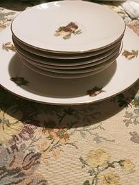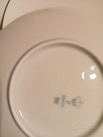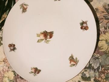 Serv.da frutta Bavaria : 1 piatto grande e 6 piattini.Senza crepe né sbeccature con bordo un un dorato ,disegni e immagine centrale.1950 Vintage. Prezzo ribassatissimo