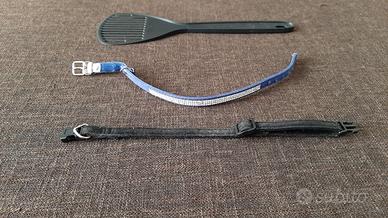 Set composto da: 2 guinzagli, uno blu con strass in condizioni ottime e uno nero simil velluto nero in buone condizioni; 2 guinzagli in condizioni ottime, uno con catena e moschettone, uno di stoffa plastificata; 1 paletta pari al nuovo per bisogni. Misure in foto. Vendo anche separatamente.