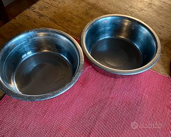 -2 ciotole in acciaio , diametro superiore esterno cm 21, interno cm 18 , profondità 7 cm . Usate, ma un condizioni buone, no ammaccature