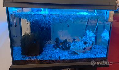 a) Acquario in vetro di ottima qualità, 61,5 x 34 x 43 cm, con una capacità di 60 litri. Tecnologia di filtraggio EasyCrystal con due cartucce filtranti sostitutive per un'acqua cristallina e salubre nel tempo