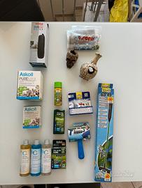 Vendo set completo per acquario d’acqua dolce con tutto il necessario per filtraggio, manutenzione, fertilizzazione e arredo.