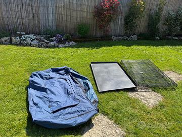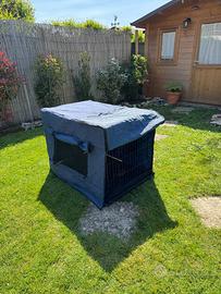 Vendo set completo di gabbia per cane, compreso di telo di copertura. Misure: larghezza 106x70xh77