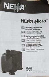 Vendo per inutilizzo N.2 POMPE ACQUARIO NEWA + MICRO JET 450 L/H perfettamente funzionanti, complete di loro accessori ( per la pompa NEWA libretto di istruzioni e scatola originale. Per altri dettagli vedere le foto allegate. No spedizione.