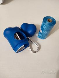 set di una ciotola in silicone MONGE nuova mai usata e un porta sacchetti,in dotazione un moschettone e un rotolo MONGE sempre mai usato