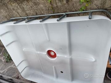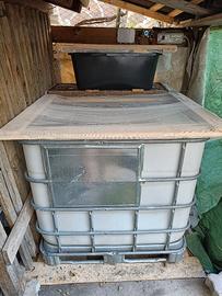 Vendo struttura artigianale per la creazione di un sistema di acquaponica, utilizzabile per l'allevamento di pesci e la coltivazione di piccole piante. Tutto compreso, ad eccezione del gabbione esterno inferiore di metallo che è da sostituire, ma facilmente recuperabile perché le cisterne vengono spesso donate gratuitamente.