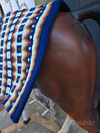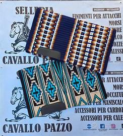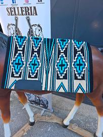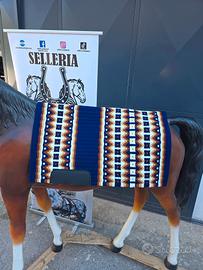 SOTTO SELLA DA SHOW WESTERN ARTICOLI PARTICOLARI E LAVORATI Una coperta da sella Western Show realizzata in lana neozelandese è un pezzo di equipaggiamento equestre di alta qualità, attraente e funzionale, progettato per l'uso in spettacoli equestri Western e rodeo. Questo tipo di coperta da sella è noto per la sua durata, comfort e stile. Ecco una descrizione dettagliata di una coperta da sella Horse Western Show realizzata in lana neozelandese: Materiale: la lana neozelandese è rinomata per la sua morbidezza, resistenza e calore. La lana è un materiale tradizionale per le coperte da sella grazie alla sua capacità di assorbire l'umidità, fornire ammortizzazione e mantenere la sua forma nel tempo. La lana neozelandese è spesso apprezzata per le sue fibre pregiate e di alta qualità. PER MAGGIORI INFORMAZIONI 320 55 97 331 EFFETTUO SPEDIZIONE 🌍