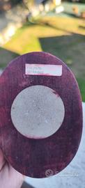 Deliziosa statuetta di un cane setter seduto su una base rotonda.
