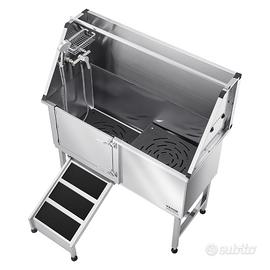 Design integrato: la vasca per la toelettatura dei cani è dotata di rubinetti per acqua calda e fredda, un soffione doccia a doppio controllo e un porta sapone, questo design rende il bagno degli animali domestici facile ed efficiente