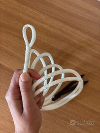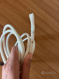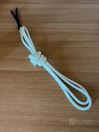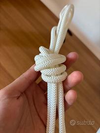 Realizzato a mano da me Doppia treccia in poliestere ad alta tenacità bianca 6mm Lunghezza 1,75m + 5cm fiocco in cuoio circa Per altre info scrivere in privato