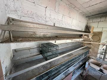 vendo struttura in acciaio con abbeveraggio,funzionante vendo completo con 30 gabbie possibilità di vendere le gabbie singolarmente 2€ a pezzo
