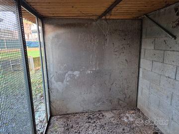 Cedo struttura formata da 16 pannelli di cm 95,5, 4 pannelli da cm 91,0 con porta con serratura a chiave, 5 pannelli in lamiera da 190,0 tutti con un altezza di cm 195,0 compresa di tetto ondulato ........ attualmente forma 4 volere ma essendo modulare si può comporre come si vuole .