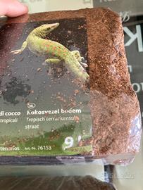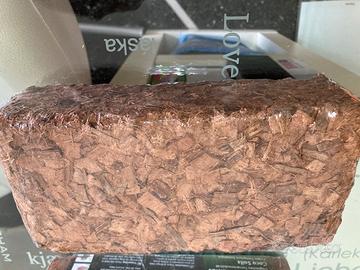 Due mattonelle di fibra di cocco e una di trucioli di cocco , da 9 litri