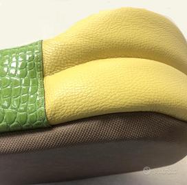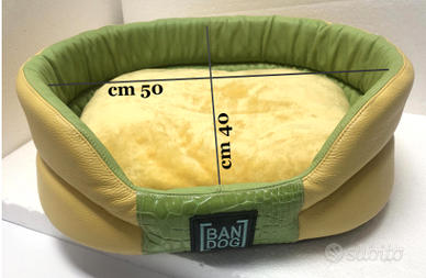 Cuccia in vera pelle, prodotto artigianale italiano, un letto comodo, morbido e caldo, ha un cuscino in velluto di ciniglia, antiscivolo, facile da pulire. vendo per inutilizzo, è NUOVISSIMA, USATA SOLO per un servizio fotografico, è un prototipo , quindi è un pezzo unico. Vedi le misure interne, adatta per cani o gatti di taglia piccola/media. controlla le misure interne.