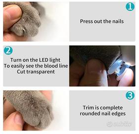 【LED per vedere la linea di sangue】 Il tagliaunghie per animali domestici ha una luce LED integrata ad alta luminosità, che può illuminare le unghie dell'animale e rivelare la linea di sangue quando è in uso. È conveniente evitare le linee di sangue ed evitare il sanguinamento dell'animale domestico e l'infezione batterica.