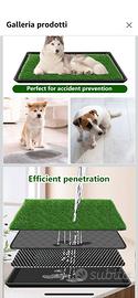 Tappetino per erba per cani con vassoio per animali domestici, tappetino per addestramento in erba artificiale per cani con vassoio per interni ed esterni. Dimensioni: 4,5 x 91 x 61 cm; 2,55 kg La confezione include: Tappetino per pipì con erba artificiale, lavabile, vassoio con griglia rimovibile, 4 cuscinetti antiscivolo Comprato a 83€ mai utilizzato
