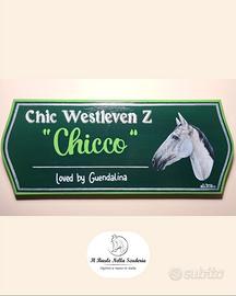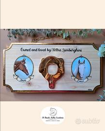Dal 2012 realizziamo targhe in legno tagliate e dipinte a mano, curate nei minimi dettagli per rendere unico il tuo cavallo.