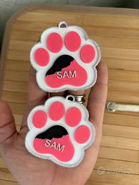 Quella che vedi nelle foto è un esempio ispirato alla zampina del nostro micio Sam, per mostrare quanto sia possibile personalizzare la propria targhetta nei più minuziosi dettagli! 🐾