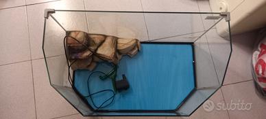 tartarughiera con pompa elettrica ben tenuta e funzionante. La do via x crescita della mia tartaruga . altezza 36 lunghezza 62 profondita' 39