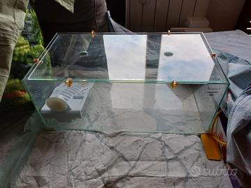 tartarughiera in vetro con coperchio e isola per tartarughe d' acqua . misure 50 x 27 x 20 cm. per totale litri 27 eventuale ritiro presso il venditore