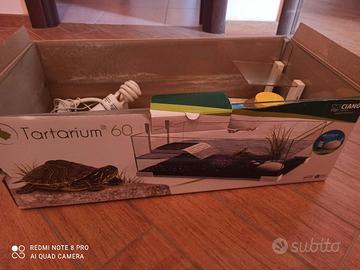 Vendo tartarughiera 60 litri, tartaruga con lampada, mangime, termometro.
