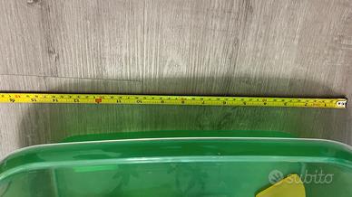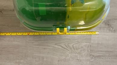 Completa di accessori, compreso coperchio con griglia, ottimo nel caso in cui si volessero lasciare le tartarughe fuori e senza pericolo alcuno; oltretutto traspira aria e gli si può dare da mangiare e fare manutenzione varia grazie alla griglia a sportellino. Il tutto in ottime condizioni come da foto.
