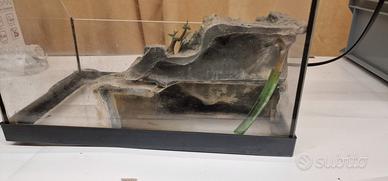 tartarughiera in vetro usata con posto per filtro e pompa e posto per lampada misure : largo 40, profondità 22 ,altezza 27