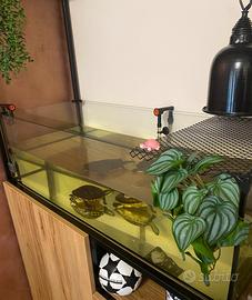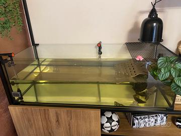 Vendo teca in vetro temperato da 6 mm misura 100x40cm, completa di filtro esterno eden con riscaldamento incorporato, supporto più lampada uv e vari accessori interni ! Io l’ho usata per le tartarughe! Perfetta senza nessun striscio !