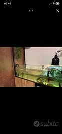 Vendo teca in vetro temperato da 6 mm misura 100x40cm, completa di filtro esterno eden con riscaldamento incorporato, supporto più lampada uv e vari accessori imterni !