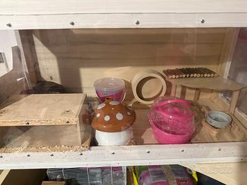Teca costruita a mano per il contenimento di criceti, è possibile adattarla anche ad altri animali.