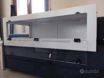 Teca professionale con riscaldamento posizionato per un terzo dell'area alla base della teca tra due pannelli appositi. Luce led bianca fredda sul soffitta nella teca