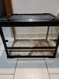 Vendesi Teca per Rettili in vetro con apposito coperchio.Dimensioni circa 60*40 altezza 40. Presenti segni di sfrisatura sul fondo.