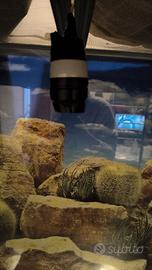 Teca per rettili 120x60x45 cm. Usata per un drago barbuto (pogona vitticeps). È fornita con arredi, lampade (uva/uvb + ceramica per riscaldamento). È già provvista di attacco per un'altra lampada. Vendo insieme temporizzatore per il riscaldamento e termometro